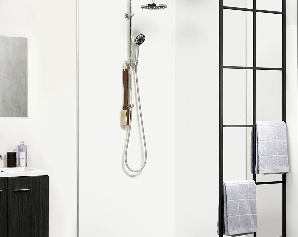 Pflegeleicht, langlebig und stilvoll – unsere Wandverkleidungen, Duschen und Armaturen überzeugen auf ganzer Linie.