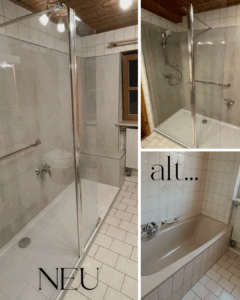 Unsere Spezialität ist der Umbau von Badewannen zu barrierearmen Duschen – und das sieht man sofort. Werfen Sie einen Blick auf unsere Badverwandlungen.